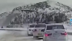 汽車冰雪路上漂移轉彎 撞飛對向車零件散落一地