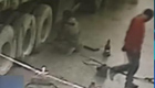 監拍:貨車側翻 修理工被砸前幸運脫險