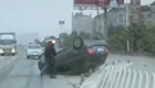 監拍:轎車翻成底朝天