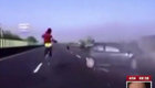 高速轎車失控司機飛出