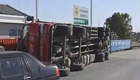 重型貨車行駛中被風吹倒