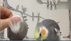 小鸚鵡爭寵低頭求撫摸