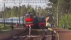 實拍:老太太冒險橫穿鐵軌 與駛來火車擦身而過