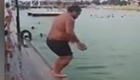 實拍胖子跳水將皮球彈向空中