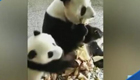 實拍:熊貓媽媽吃獨食 用腳支開撒嬌寶寶