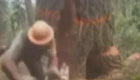 大樹突然炸裂 伐木工連滾帶爬逃跑