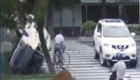 面包車失控從老人頭頂飛過