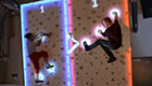 牛人攀巖墻上玩彈珠游戲