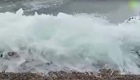 湖水拍岸瞬間結成冰