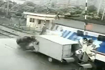 監拍火車與汽車相撞瞬間