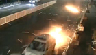 轎車撞散護欄火花四射