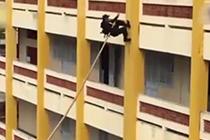特警靠一根竹竿飛檐走壁