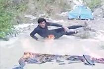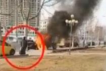驚險(xiǎn)!騎車男子猛拐彎 被卷大貨車底幸運(yùn)逃生