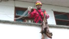 【解說】據楊校長介紹,該校受損較為嚴重的教學樓中包括2008年汶川地震災后重建的工程,當時受災教學樓也是因為裂損厲害而投入重建。而五年后,由于離雅安地震震中更近,該棟樓在這一次震后的裂損有增無減。目前,該校還不能確定何時可以恢復上課。