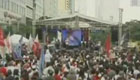 【解說】記者在現場看到,展館內各食品企業的禮盒區域大多無人問津,購買禮盒的市民也不多。一眼望去,幾乎所有的參展商都打著價格戰。不過在各企業現場手工制作的區域,卻都排起長龍,10余個粽子工人也忙不過來。