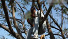 【解說】事故現場,被困婦女一只手死死抓住樹干,另一只手則緊緊的抱住4歲的女兒,呼喊求救。而此時農田邊上的排水渠受到洪流影響,水流非常大。救援人員查看周邊情況后發現,跨過排水渠是通向農田的唯一途徑。根據現場掌握情況,救援人員立即架設起二節拉梯,將梯子橫跨在水渠上,但由于水流太急,二節拉梯被洪水沖刷得吱吱作響,很不穩固,兩名救援人員綁好安全繩,一步一挪的走到排水渠的另一邊,接過婦女手中的孩子,攙扶起婦女,向安全地帶返回。