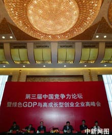 由中國新聞社主辦的第三屆中國競爭力論壇暨綠色GDP與高成長型企業高峰論壇10日在北京人民大會堂開幕。本次論壇的主題是“倡導‘十一五’綠色成長理念,打造高成長型企業”。