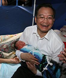 溫家寶看望地震災區群眾 號召"挺起不屈的脊梁"