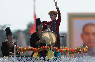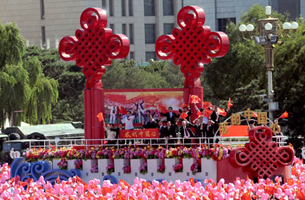 新疆彩車亮相群眾游行