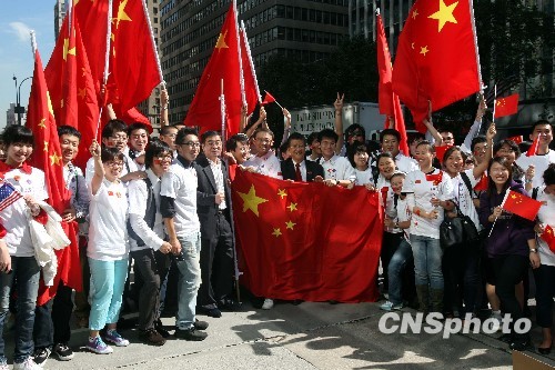 圖:旅美中國學生紐約街頭歡迎胡錦濤訪美