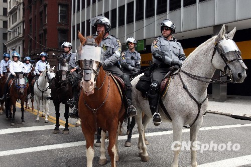 圖:匹茲堡街頭騎警護衛峰會舉行