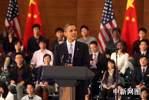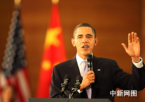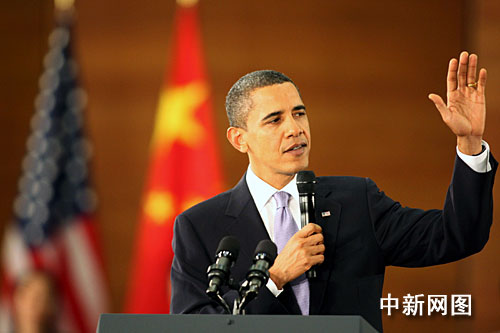 圖:美國總統奧巴馬在上海發表演講
