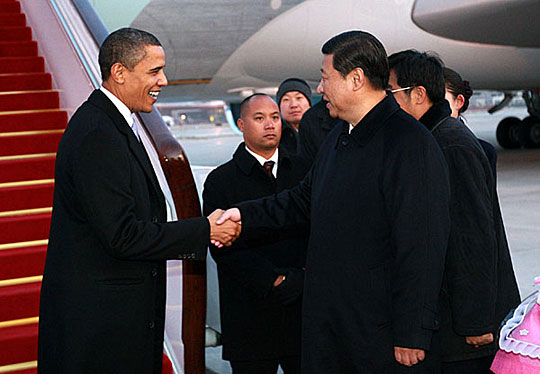 圖:奧巴馬飛抵北京 習近平前往機場迎接(2)