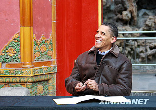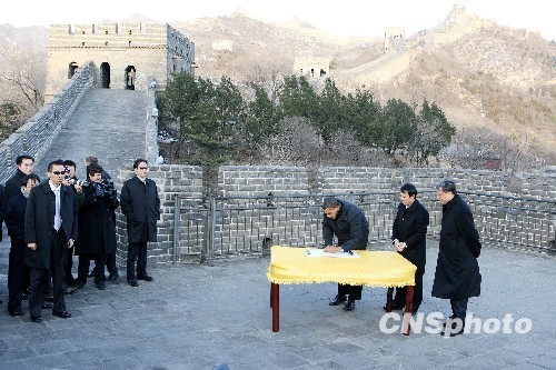 圖:奧巴馬為八達嶺長城題詞留念