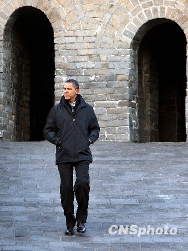 圖:奧巴馬冒嚴寒登八達嶺長城(2)