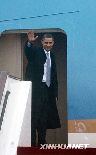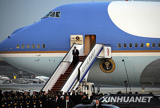 圖:美國總統奧巴馬乘“空軍一號”抵達上海
