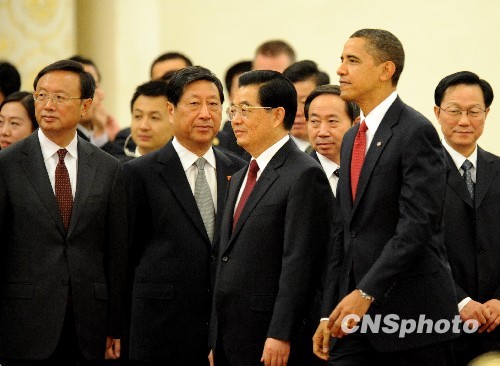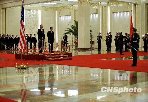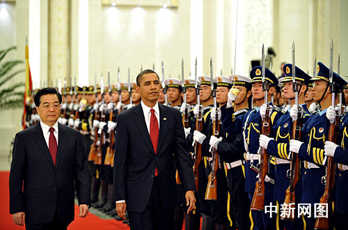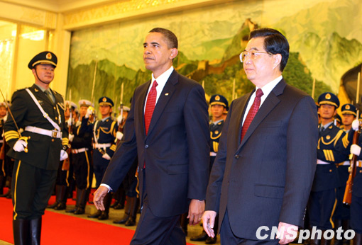 圖:胡錦濤舉行儀式歡迎美國總統奧巴馬訪華