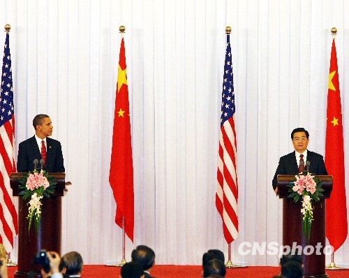 圖:胡錦濤與奧巴馬北京共同會見記者