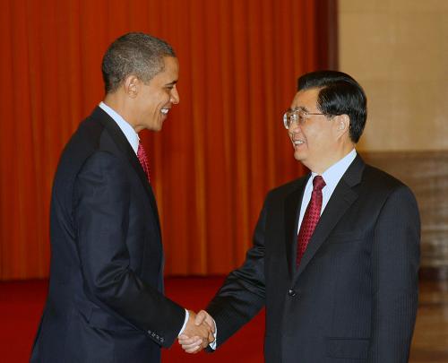 圖:胡錦濤歡迎美國總統奧巴馬訪華
