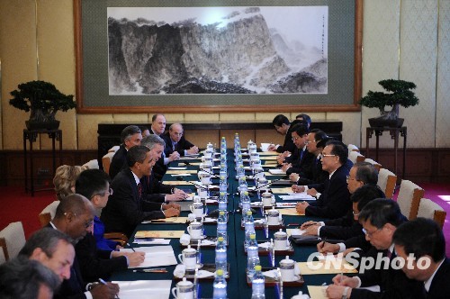 圖:溫家寶總理會見美國總統奧巴馬一行