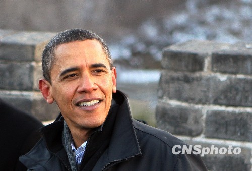 圖:奧巴馬登上北京八達嶺長城