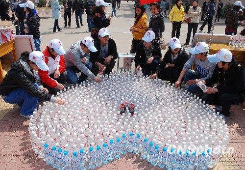 圖:江蘇無錫中學生開展向災區捐水活動