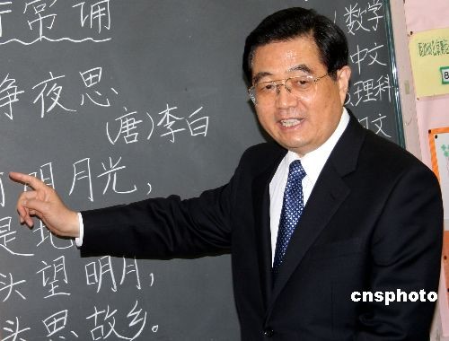 胡錦濤給日本中華學校小學生講解唐詩《靜夜思》