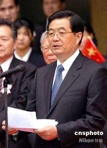 圖:胡錦濤在橫濱中華山手學校發表重要講話