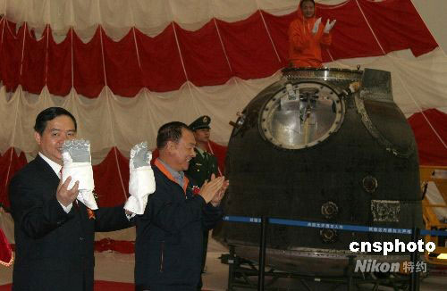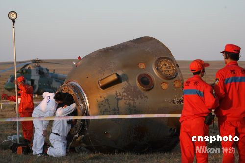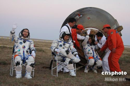 組圖:神七返回艙著陸航天員出艙經典瞬間回眸