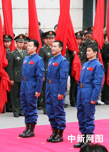 組圖:神七航天員翟志剛劉伯明景海鵬回京