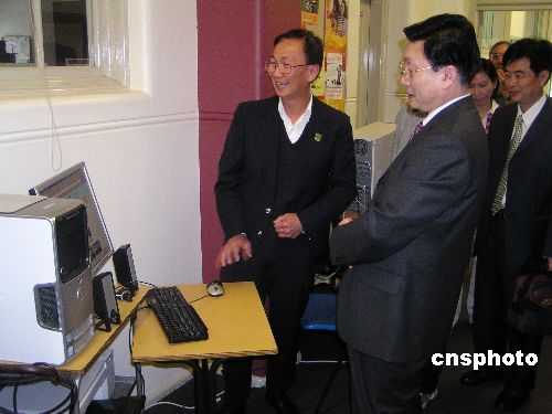 中國國務(wù)院僑務(wù)辦公室副主任馬儒沛(左二)十一月三日在悉尼參觀“雪梨中文學(xué)校”。中新社發(fā) 葛明 攝
