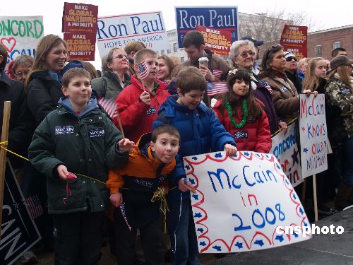 美國新罕布什爾州8日凌晨開始二00八年大選初選,一些美國兒童也加入了助威隊伍。中新社發(fā) 余東暉 攝