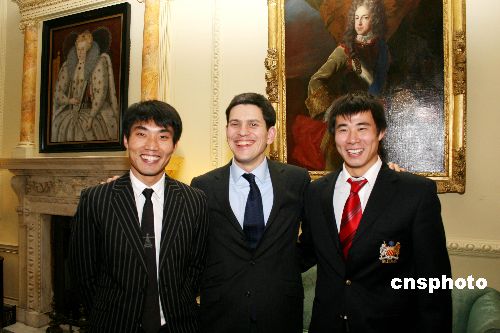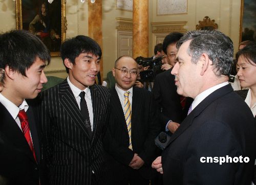 當?shù)貢r間1月14日下午,即將訪華的英國首相布朗在唐寧街十號會見旅英華人華僑、中資機構(gòu)負責人、留學生等華人杰出代表。中國足球明星鄭智和董方卓作為受邀代表一同出席。中新社發(fā) 李鵬 攝