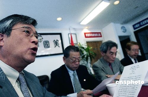 當地時間3月9日,舊金山中國統一促進會、北加州中國和平統一促進會和海外興中會發表聯合聲明,堅決反對臺灣當局“入聯公投”。中新社發 陳鋼 攝