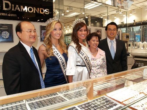當地時間11月1日,美國加州小姐走訪洛杉磯市中心華人商家,受到華埠僑領楊世光、王炳春、佘漢的歡迎。中新社發 盧威 攝