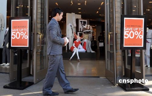 周日原本是商場人氣最旺的時候,洛杉磯市區的一家中高檔服裝店打出“最高打五折”的告示,店員在門口發放優惠券,但店內顧客依舊寥寥。受金融危機影響,全美失業率突破百分之八,消費者信心大受打擊,中高檔商品經營者首當其沖。中新社發 張煒 攝