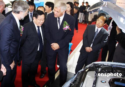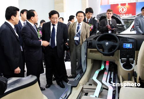 10月25日,第五屆北京國際節能環保汽車展覽會在北京開幕,中國科技部部長萬鋼參觀展會上的展車。中新社發 鄭雄增 攝