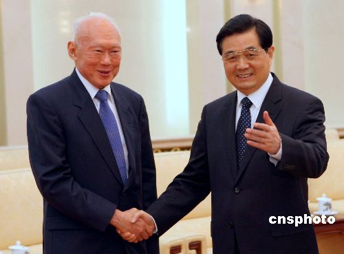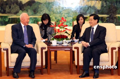 十一月十六日,中國國家主席胡錦濤在北京人民大會堂會見來訪的新加坡內(nèi)閣資政李光耀。中新社發(fā) 任海霞 攝