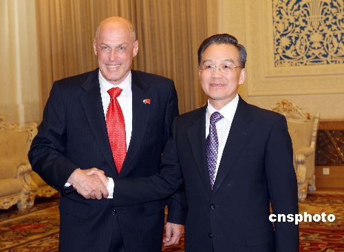 十二月十三日,北京人民大會堂,中國國務院總理溫家寶會見美國財政部長保爾森等出席第三次中美戰略經濟對話的代表。中新社發 毛建軍 攝