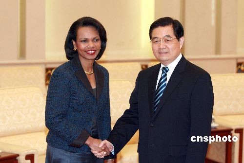 圖:胡錦濤會(huì)見(jiàn)美國(guó)國(guó)務(wù)卿賴斯